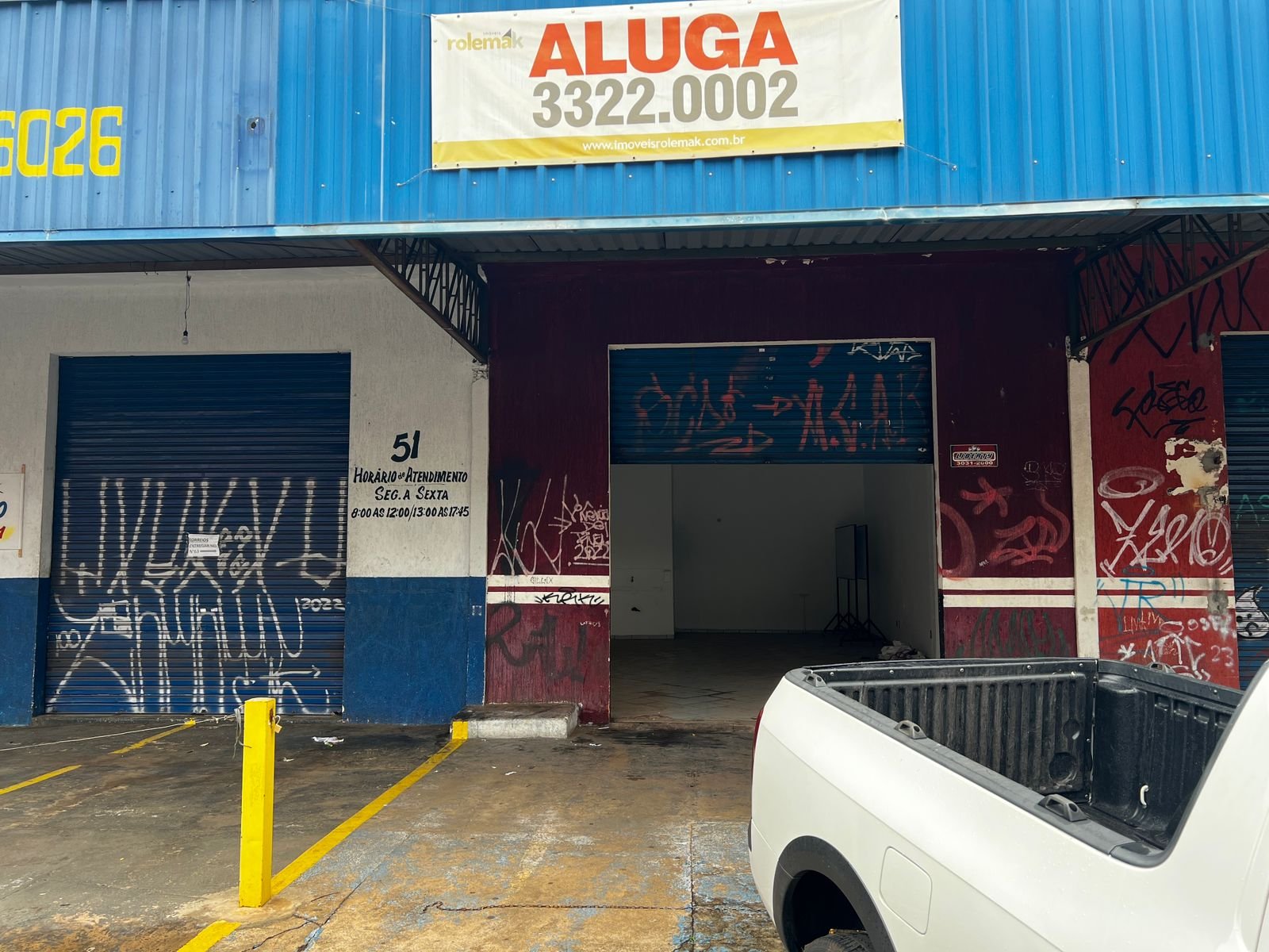 Barracão com 50m² de área total, com piso frio, 01 wc e 02 vagas de estacionamento exclusivo (cobertas com toldo).